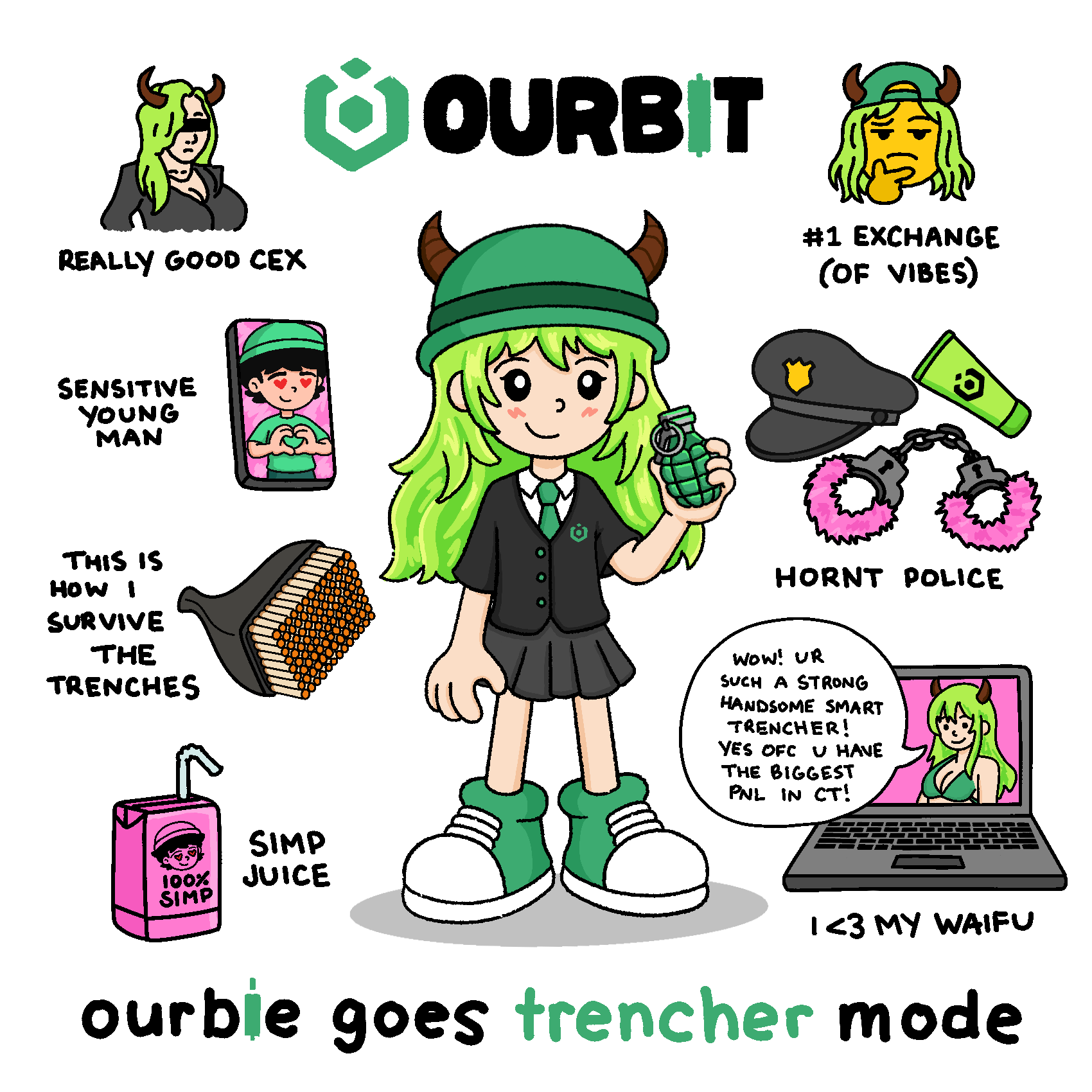 Artist, Grizzle, created the Trencher character as a hand drawn mascot for the crypto “trenches.” The drawing went viral, catching the attention of the crypto community, as well as Alon, the co-founder of popular memecoin launchpad, PumpFun. This inspired a deployer to launch an unaffiliated token called $trencher. Instead of opposing the token like many artists do, Grizzle took a different approach and chose to embrace the community that had formed around her art.
